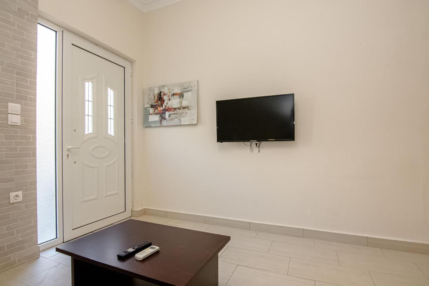 One-Bedroom Apartment. Boasting a private entrance, this air-conditioned apartment includes 1 living room, 1 separate bedroom and 1 bathroom with a walk-in shower and a hairdryer. In the well-equipped kitchen, guests will find a stovetop, a refrigerator, kitchenware and an oven. Featuring a terrace with sea views, this apartment also offers a washing machine and a flat-screen TV. The unit has 2 beds.
